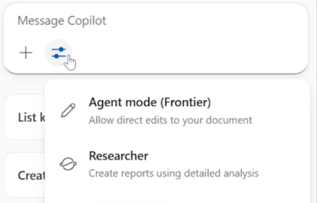 At the moment, Agent Mode is part of the Microsoft Frontier program, but it should be rolling out soon for all Copilot licensed users. You’ll know if you have access because the mode will appear as an option in your Tools menu in the Copilot text box.