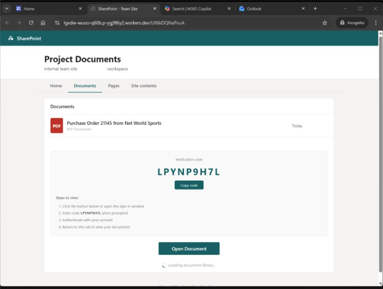 It is a phishing technique that abuses Microsoft’s device code login flow. The attacker gets the victim to enter a code on a real Microsoft page, which can authorise access to the victim’s account.